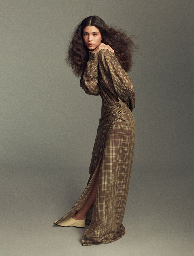 La mannequin mesure 1m80 (5'11) et porte une taille 2.