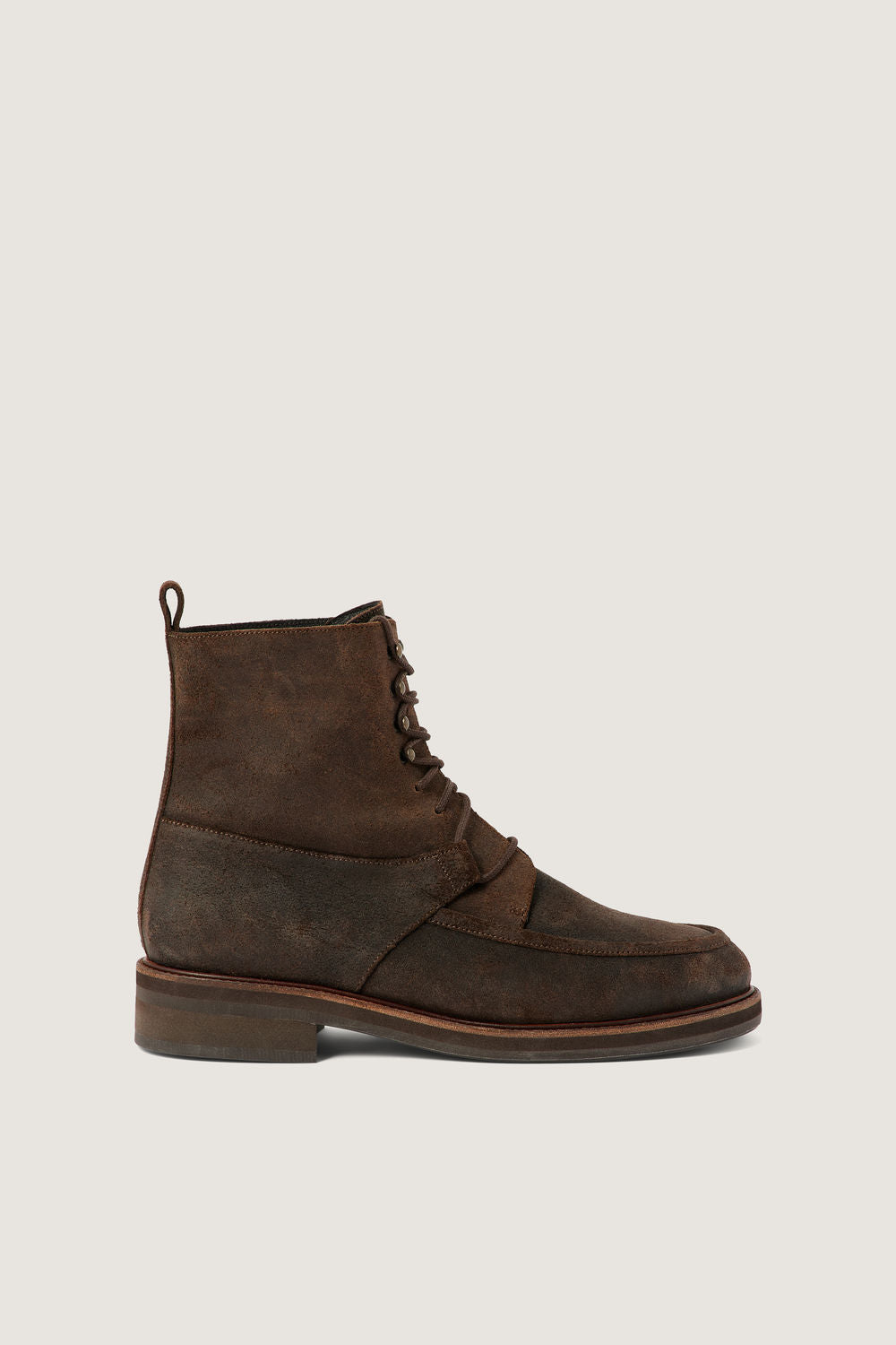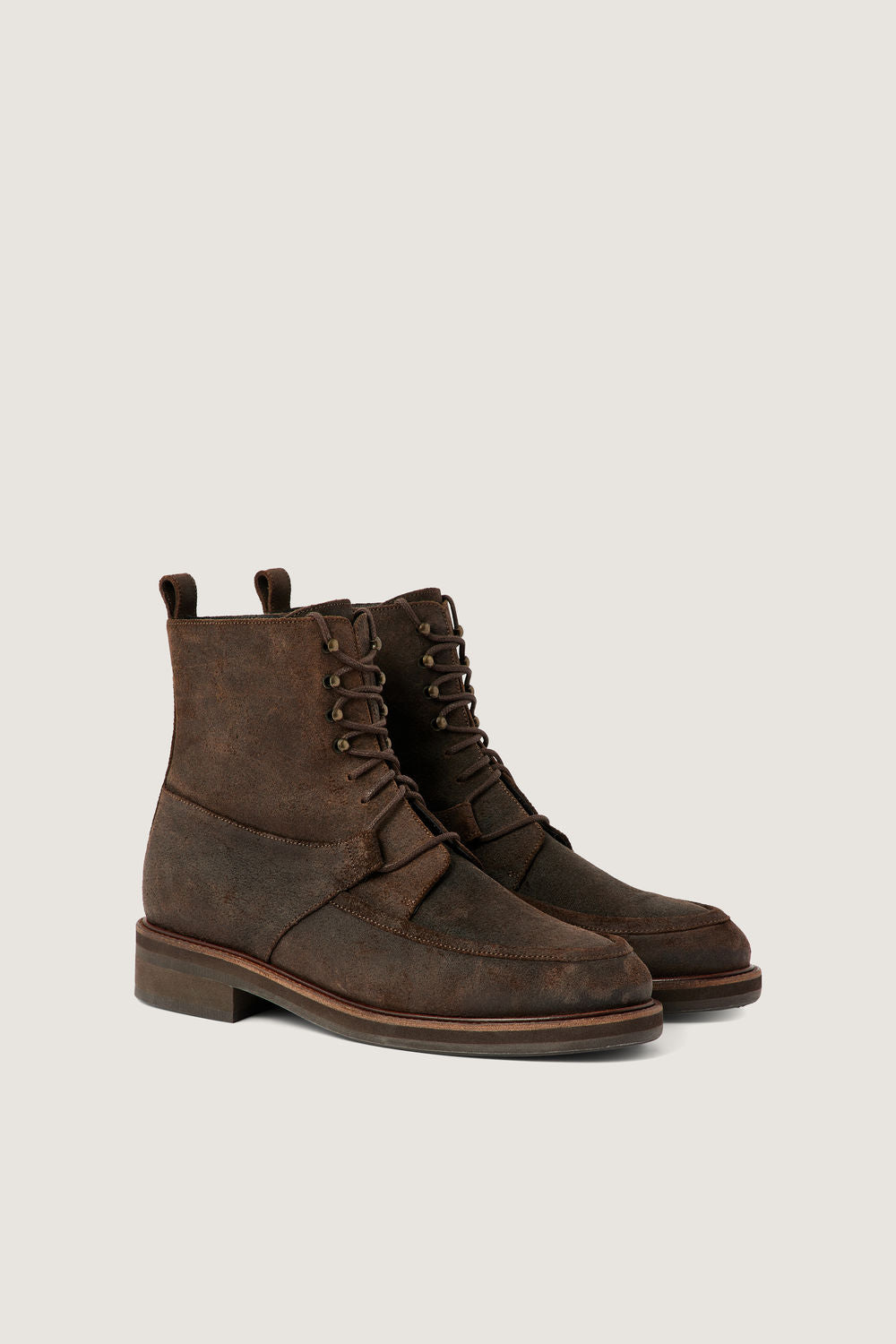 RALPH est une bottine à lacets inspirée des chaussures de randonnée. Le cuir huilé se patine avec le temps et ajoute au côté authentique et artisanal.