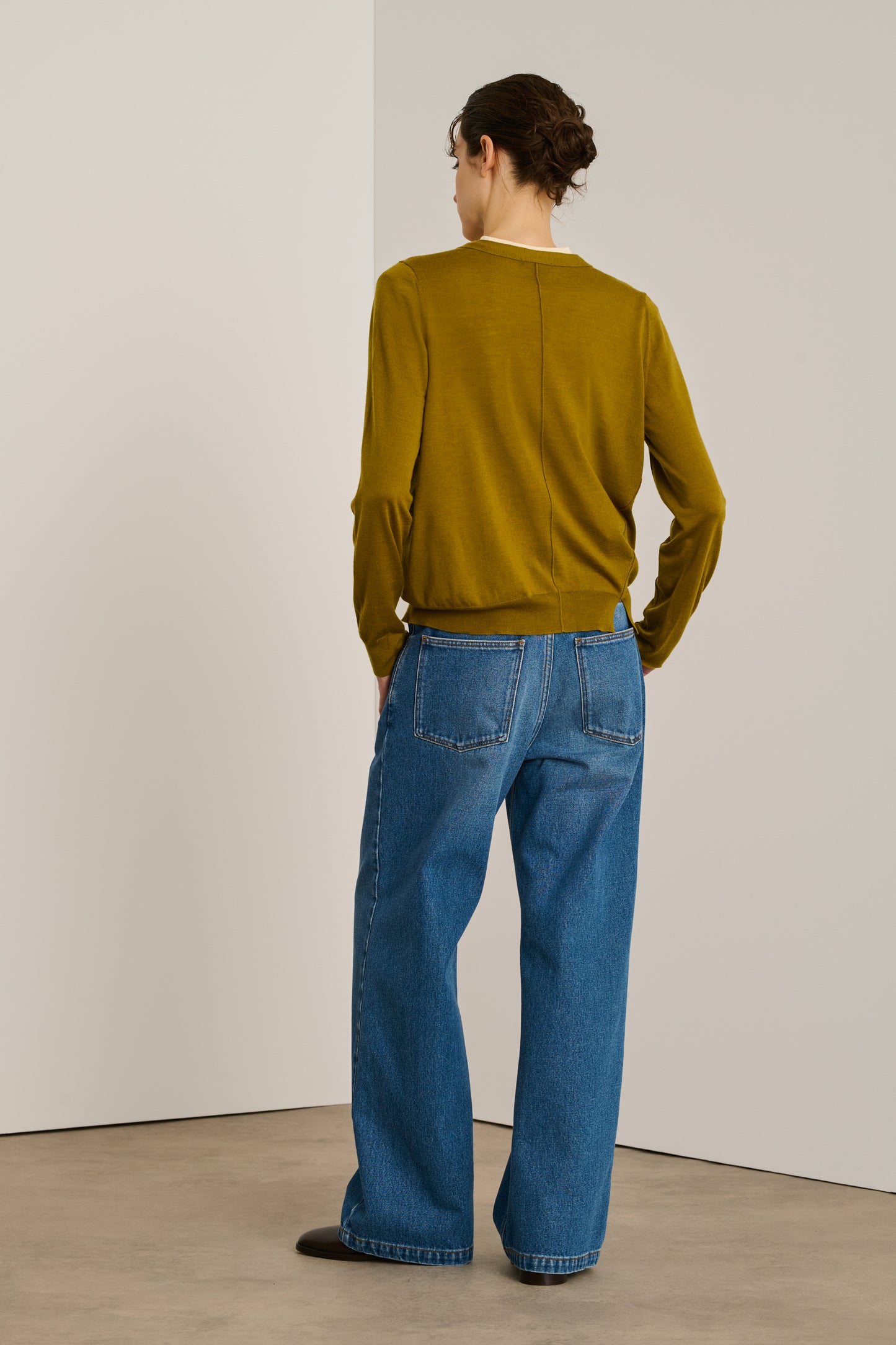 ALYSSA est un cardigan ample à large encolure en V. Il est tricoté dans une laine mérinos extra-fine à porter à même la peau. Asymétrie en bas de corps, diminutions, finitions bord-côtes et coutures retournées sont autant de détails qui agrémentent ce cardigan faussement classique.